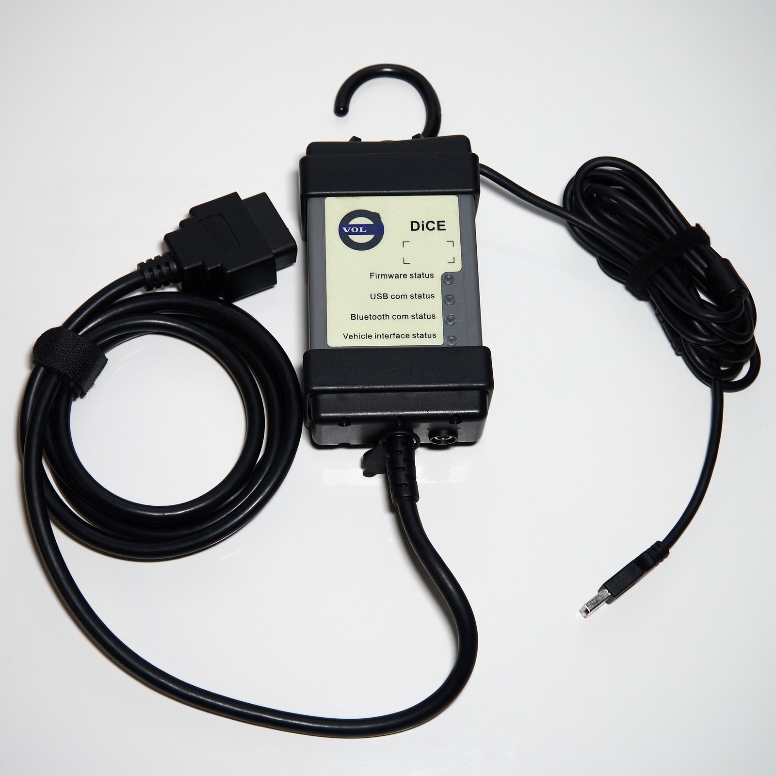 This aftermarket OBDII diagnostic interface is designed for in‑depth diagnostics on Volvo vehicles approximately from model years 1999 to 2014 when used with VIDA 2014D software. It is available in two hardware configurations: a full‑chip M32C mainboard option and a J2534‑compatible option. The interface is intended for professional workshops and skilled enthusiasts seeking comprehensive module access, clear status indicators, and a practical integrated hook for hands‑free placement.